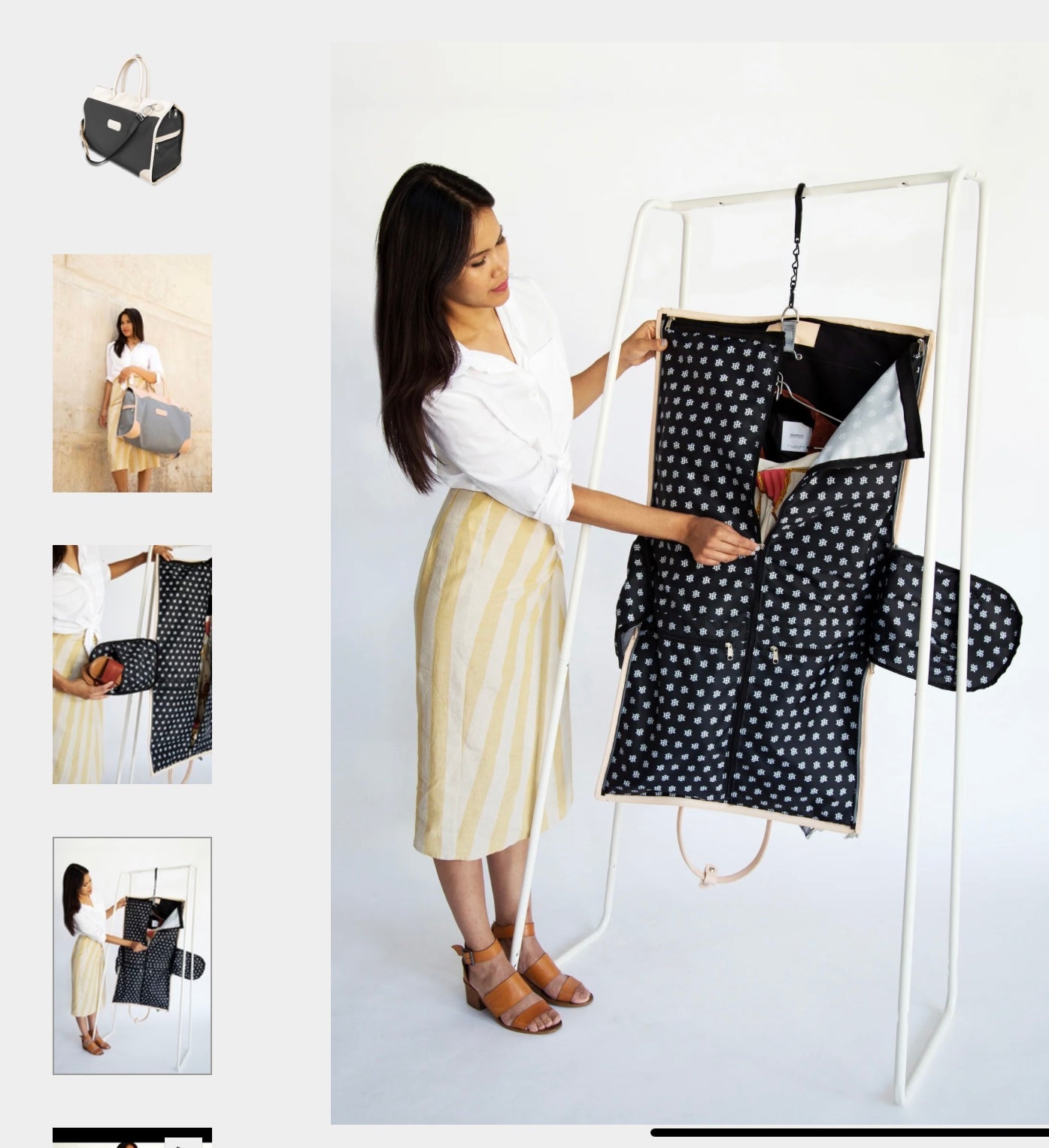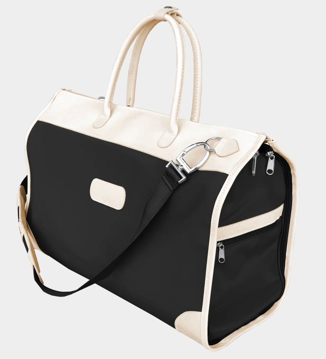 Our must-have for travelers, this stylish carry-on compliant duffel bag fully unzips to convert into a hanging garment bag. Includes rolled leather handles, as well as an adjustable shoulder strap for comfort carry. Zippered exterior pockets on both ends & elastic interior pockets for shoes, socks, or undergarments. The zippered exterior pockets on the back of the bag double as a trolley sleeve. Comfortably fits up to 5 hanging garments in the garment sleeve. Comes with a removable hook for easy storing over any door. An elegant duffel bag when you need to carry it, a garment bag when you need to hang it, and folds completely flat when you need to stow it, the Southtown has plenty of room for all of your weekend essentials.