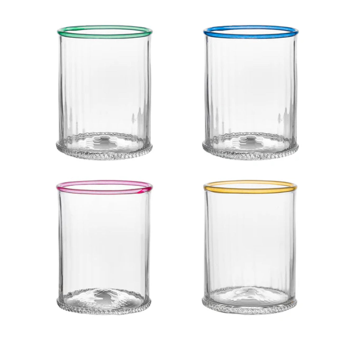 A fresh and modern spin on our iconic Bohemian Glass, the Nell Collection shimmers with rippling mouth-blown glass and a joyful wink of color to create pure cocktail hour eye candy.