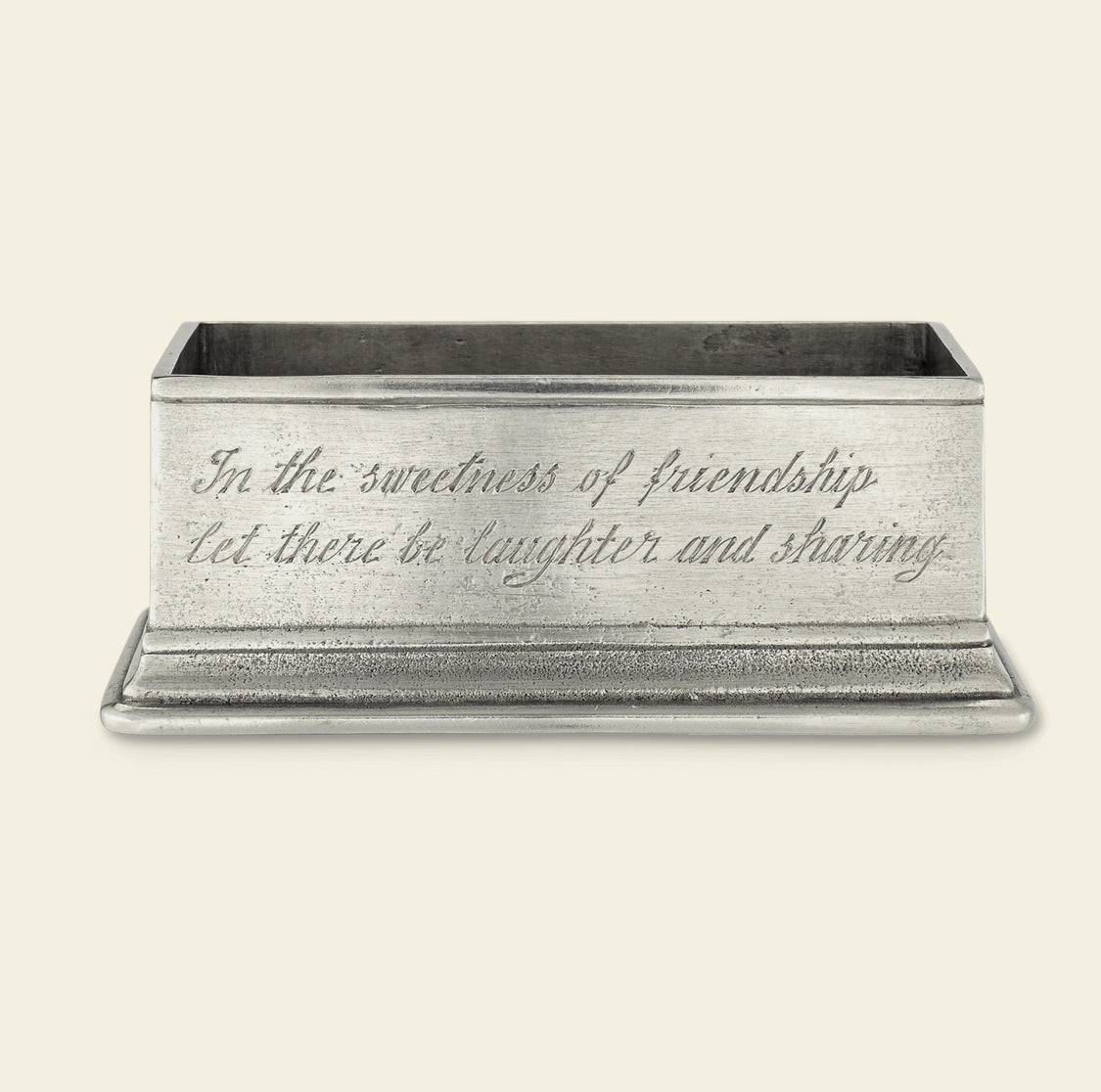 A wonderfully versatile piece, this all-pewter business card holder makes an alluring receptacle for displaying your credentials to the world. As a sugar packet holder, it transforms the simple staple into a lavish offering. Personalize it with hand engraving to make a thoughtful gift.
