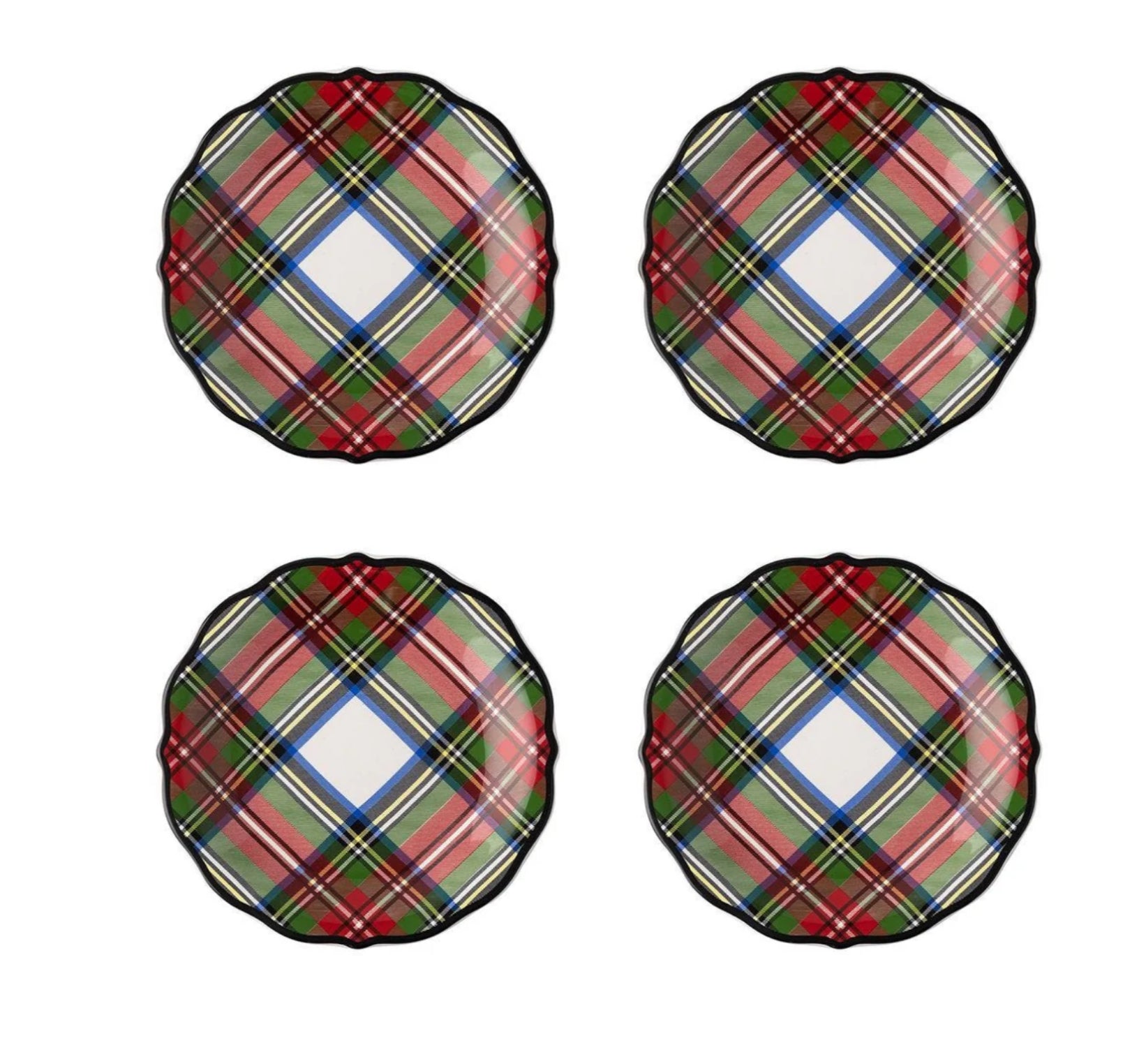 Our take on the classic Tartan pattern, historically rooted in Scottish textiles, re-interpreted for your everyday dining needs. Available two colorways - a palette of soft hues of Chambray blue and a dashingly colorful Stewart Tartan – that border scalloped silhouettes.