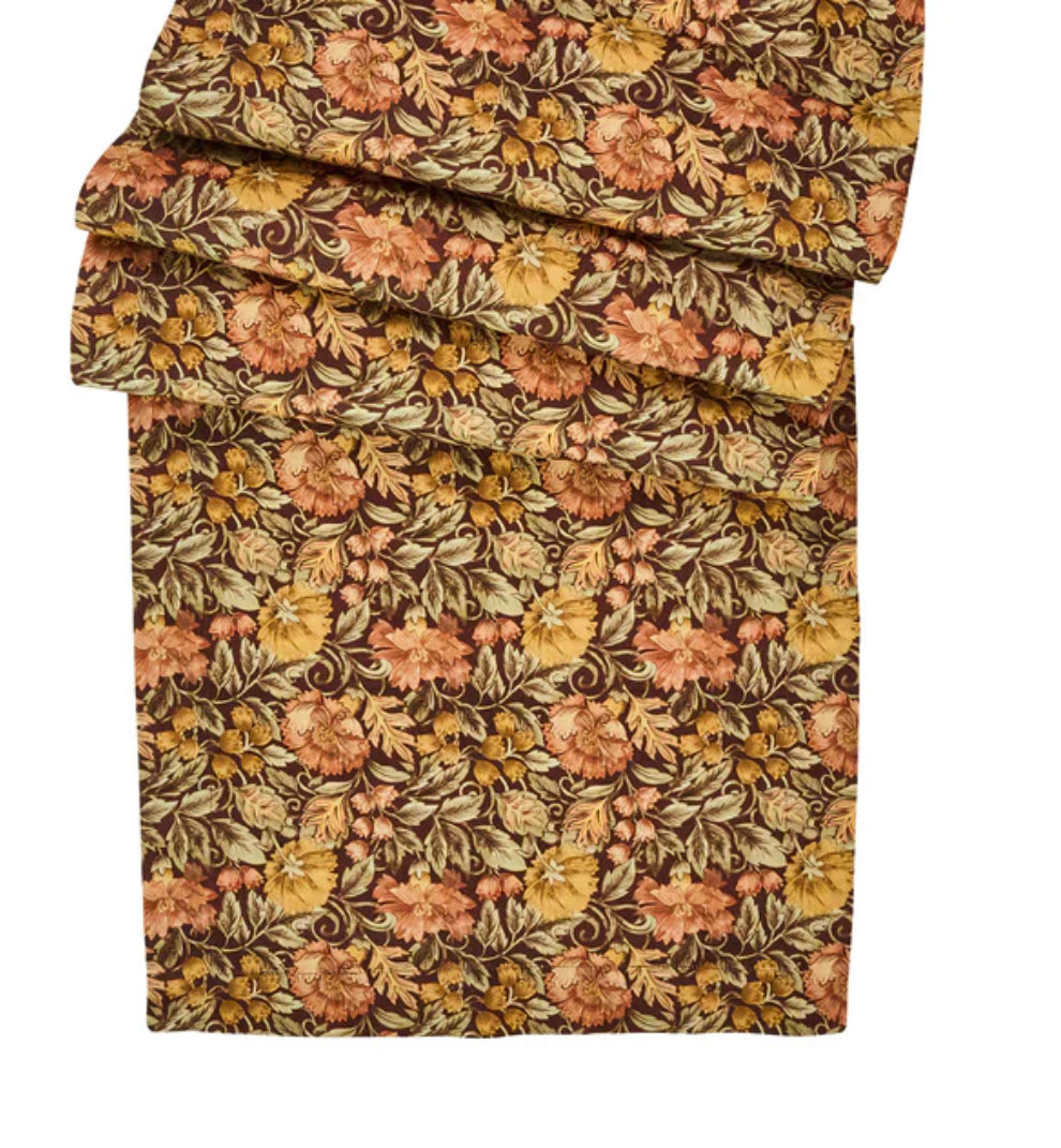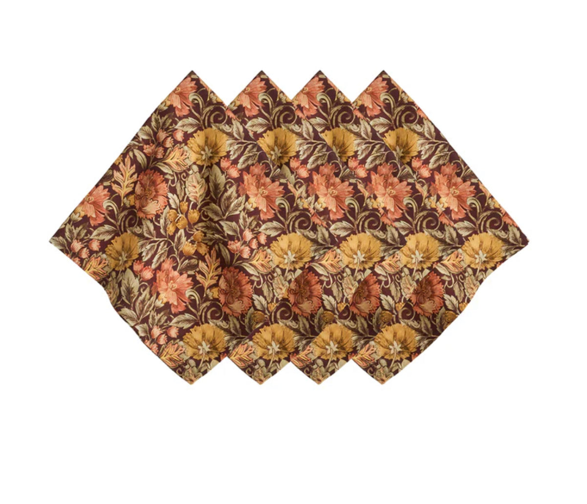 -Inspired by heirloom textiles, a fantasy of romantic florals and intertwining leaves in earth tones compose this quietly bold collection. Embroidered details and scalloped silhouettes layer as beautifully as falling leaves to create tablescapes that evoke the natural elegance, richness, and abundance of autumn.