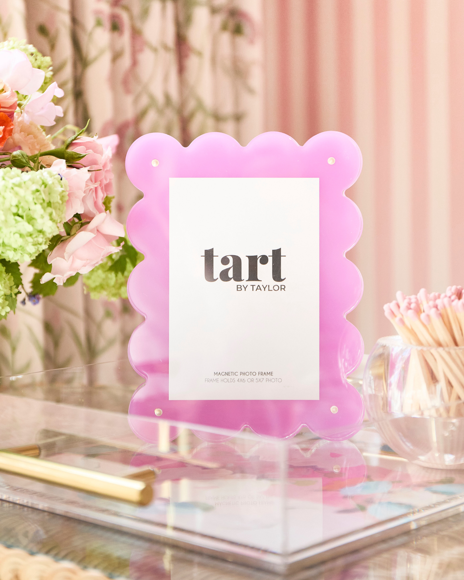 Display your favorite photos in style with this fuchsia purple acrylic picture frame! It features a magnetic border to securely hold your cherished pictures as well as adding a stylish touch. Perfect for giving your home a fun and unique look! 🤩 - Frame Overall Size: 8'' L x 6'' W x 1'' D - Holds 4x6'' or 5x7'' photos - Self-standing photo frame, can stand vertically or horizontally - Two acrylic panels simply attach together using four industrial strength magnets - The magnets are strong enough to hold various items like tickets, invitations or dried flowers, making for the perfect keepsake. - Made of acrylic - Use a soft damp cloth to clean and keep inside