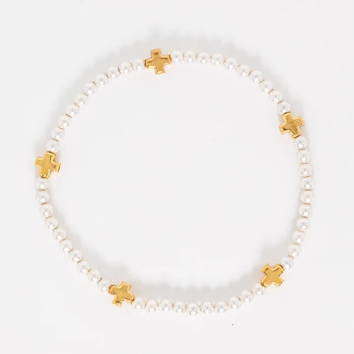 Classic pearl 3mm bead bracelet - signature cross gold charm