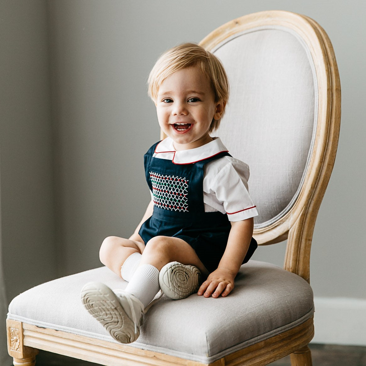Ho ho ho, the holidays are here and you want your little boy to look dapper as can be. This heirloom-quality Feltman's piece is the perfect smocked Christmas outfit for your loved one this season!