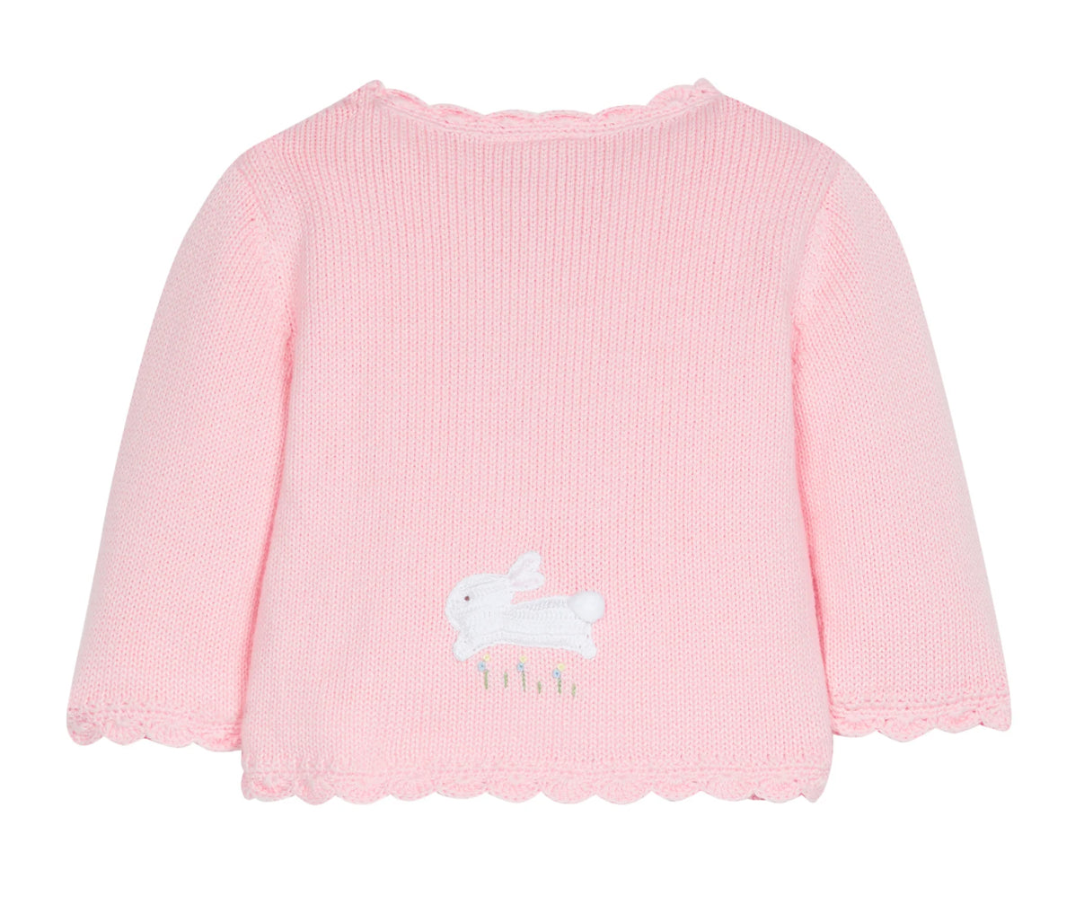 Our signature Crochet Sweater is made from 100% Peruvian pima cotton with hand-crocheted bunnies and wooden buttons for your little one to cozy up in. This light pink sweater pairs beautifully with our coordinating Crochet Playsuit - Pink Bunny and makes a great gift for new moms and babies.
