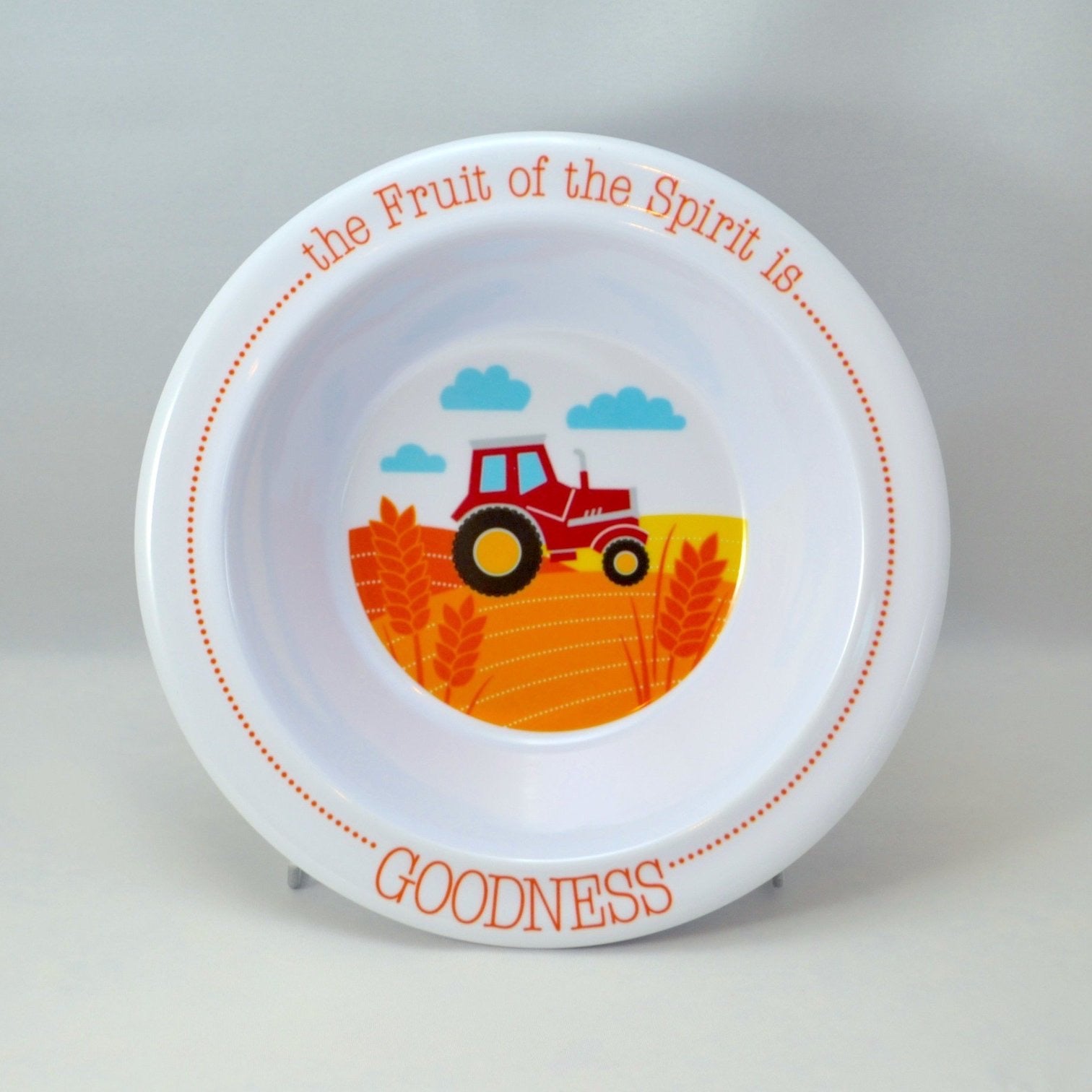 Fruit-Full Kids makes high quality, adorable children's tableware designed to encourage and reward kids as they develop Christian Character. Each design features a Bible verse or character trait that serves as a conversation starter and turns family mealtimes into fun, teachable moments. Our products make great gifts or are a fun addition to your own daily mealtime routines. But best of all, because they were designed by a Mom, they are dishwasher safe, BPA-free and sturdy enough to stand up to daily toddler use!