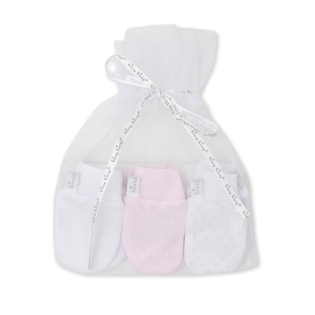 Set of 3 Mittens / OS / White W/ Pink Dots