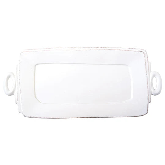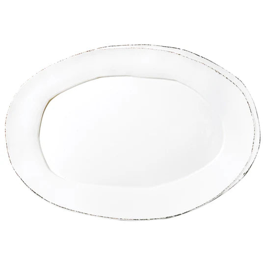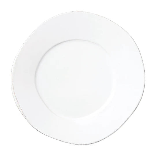 The clean and simple lines of Lastra were inspired by the circular wooden slab used for centuries to create the outer mold in cheesemaking throughout Italy. When fashioned together with twine, the hoop was left with a slight overlap to help maintain the shape of the cheese mold. Maestro molder Stefano Roselli incorporates the overlapping detail into the entire design, from its foot to its rim. A dark dusting on the edges of each piece suggests the ash that was used to preserve these cheeses and highlights each unique silhouette.