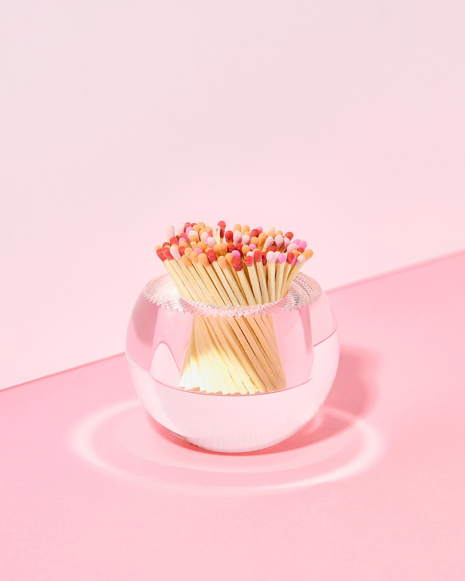 Get fired up with our Acrylic Match Striker! This acrylic match strike is the perfect accessory for your coffee table, desk, or any space that could use a little flair. It features a strike pad on the bottom and comes with 140 matches. Keep this baby ready for any occasion, let's get lit! -3.5'' Diam x 3'' H -Includes 140 matches (match refills also available) -Features a match strike pad on bottom for igniting matches -Wipe clean with damp cloth