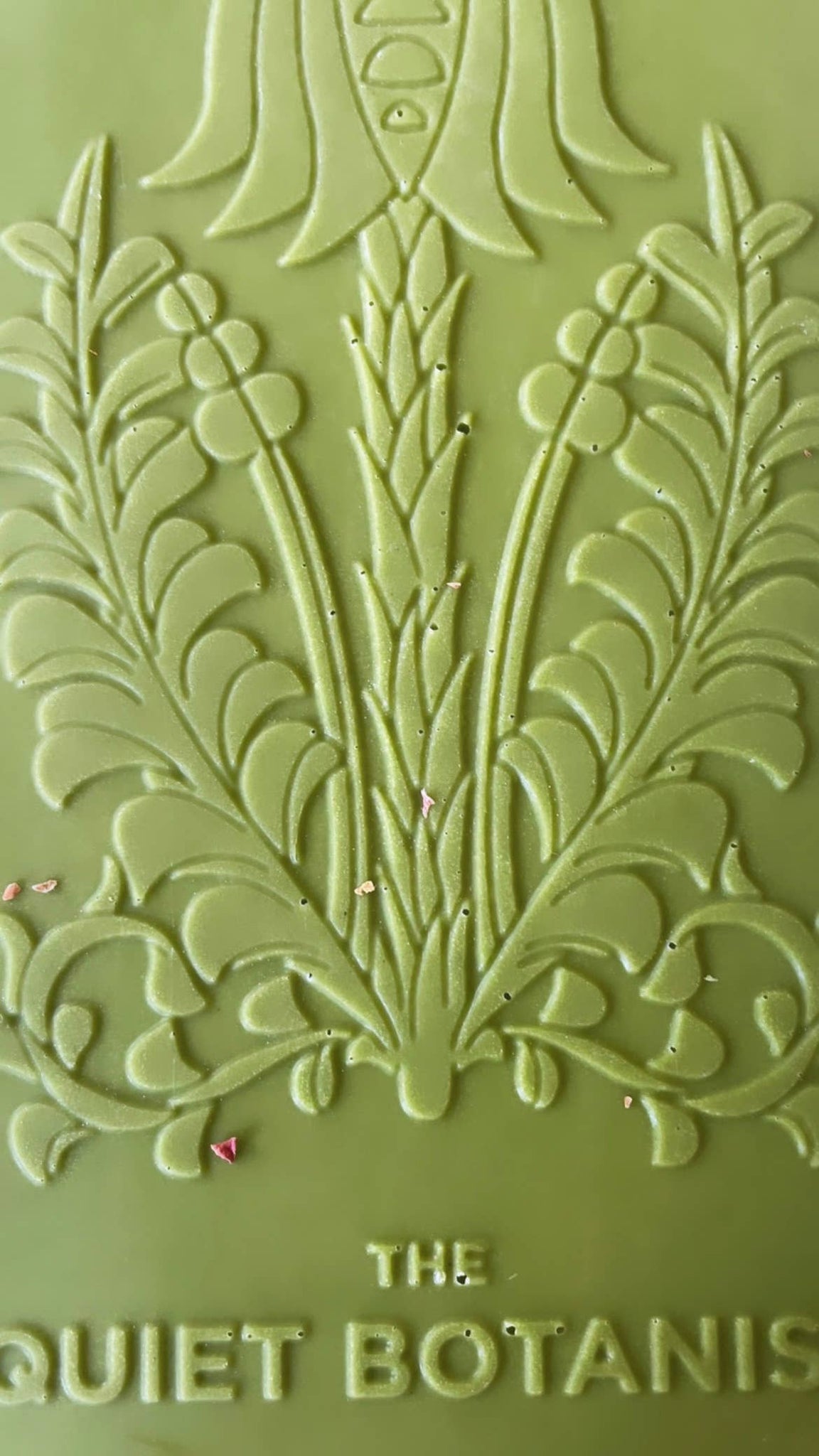 Matcha Rose is our green beauty. Beautiful green Matcha in a white chocolate base sprinkled with Rose Petals. Small batch, ethically sourced, fair trade and handmade. Wrapped in a botanical print, the large bar is revealed to be a gorgeous moody gold foil that highlights the green botanical stamp chocolate. White Chocolate with Ceremonial Grade Matcha & Organic Rose Petals. The reverse side is covered with rose petals which contrasts beautifully with the green chocolate base. 3.5oz/100g Dimensions: 4.8 in x 9 inches