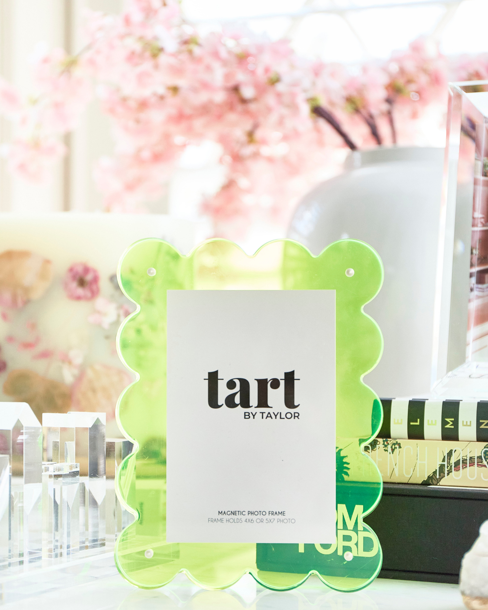 Display your favorite photos in style with this neon lime acrylic picture frame! It features a magnetic border to securely hold your cherished pictures as well as adding a stylish touch. Perfect for giving your home a fun and unique look! 🤩 - Frame Overall Size: 8'' L x 6'' W x 1'' D - Holds 4x6'' or 5x7'' photos - Self-standing photo frame, can stand vertically or horizontally - Two acrylic panels simply attach together using four industrial strength magnets - The magnets are strong enough to hold various items like tickets, invitations or dried flowers, making for the perfect keepsake. - Made of acrylic - Use a soft damp cloth to clean and keep inside