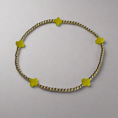 - Hand beaded on high performance elastic for a slight stretch to easily roll on and off your wrist