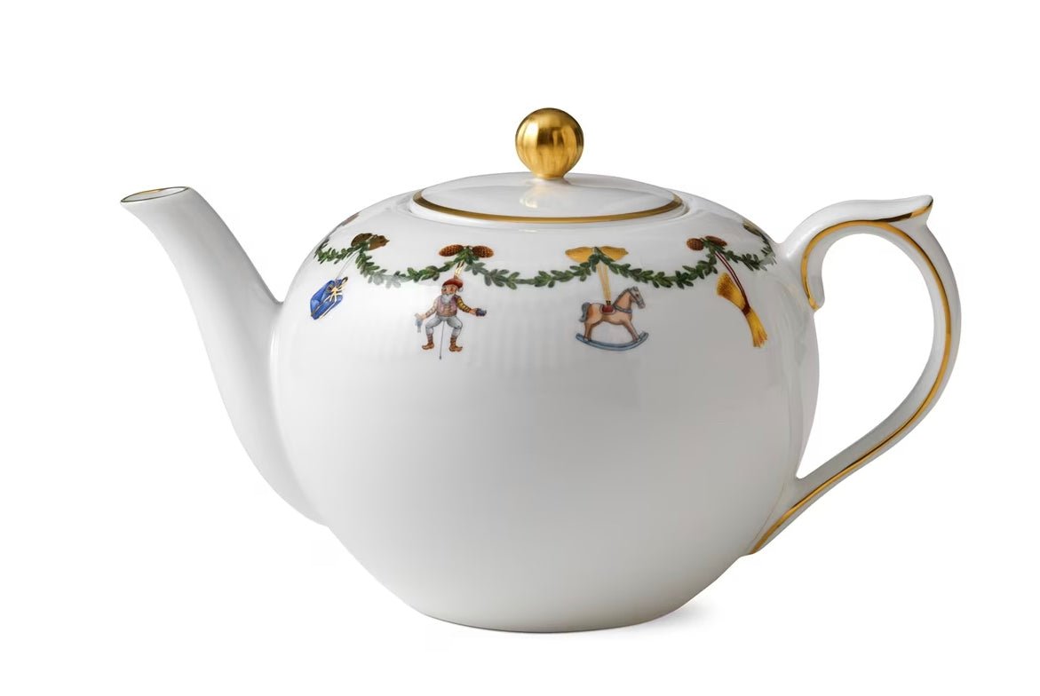 Adorned with historic decorations, Star Fluted Christmas still today frames the classic Danish Christmas. On every new piece of the Star Fluted Christmas collection, the decorations on the spruce garland are given a new sparkle of Christmas magic, making each piece its own. Created in 2006.